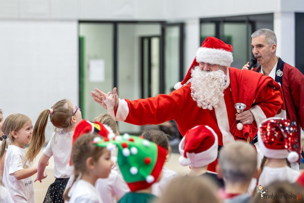 Jako pierwsi na tatami zaprezentowali się przedszkolaki, które wykazały się nie tylko opanowaniem podstawowych technik karate, ćwiczonych w ramach programu Mały Karateka, lecz przede wszystkim ogromną energią i radością. To właśnie ta energia obudziła Mikołaja! Warto dodać, że karatecki Mikołaj – jak co roku – przybył do Szczecina nie z Laponii, lecz bezpośrednio z Japonii.